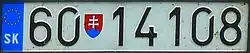 La forma antigua (en eslovaco: ŠPZ, štátna poznávacia značka) XX-NNNN o XXY-NNNN dejó de usarse el 1 de enero de 2005.