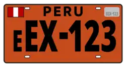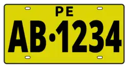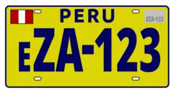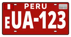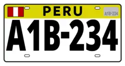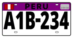 Perú requiere que sus residentes registren sus vehículos automotores y muestren las placas de matrícula de los vehículos. Las placas actuales son el estándar norteamericano de 6 × 12 pulgadas (152 × 300 mm).