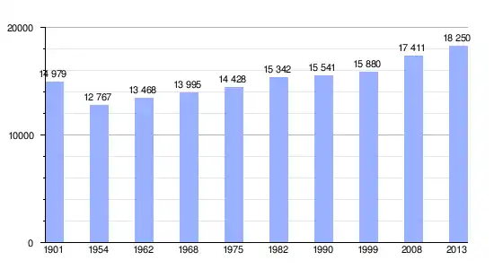 Los datos entre 1800 y 2013 son el resultado de sumar los parciales de las once comunas que forman la nueva comuna de Mauges-sur-Loire, cuyos datos se han cogido de 1800 a 1999, para las comunas de Beausse,[3] Botz-en-Mauges,[4] Bourgneuf-en-Mauges,[5] La Chapelle-Saint-Florent,[6] La Pommeraye (Maine y Loira),[7] Le Marillais,[8] Le Mesnil-en-Vallée,[9] Montjean-sur-Loire,[10] Saint-Florent-le-Vieil,[11] Saint-Laurent-de-la-Plaine[12] y Saint-Laurent-du-Mottay[13] de la página francesa EHESS/Cassini. Los demás datos se han cogido de la página del INSEE.[14]