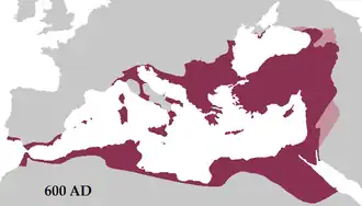 En 585/590 se creó el exarcado de África siguiendo la misma dirección. Su extensión abarcaba territorios africanos e hispanos (incluía también las islas de Córcega, Cerdeña y las Baleares, en tanto que Sicilia constituyó una unidad administrativa diferente). Las tribus bereberes fueron contenidas con éxito.[48]​ Genadio, el primer exarca, se distinguió por sus éxitos contra los moros y la pacificación de la región.[49]