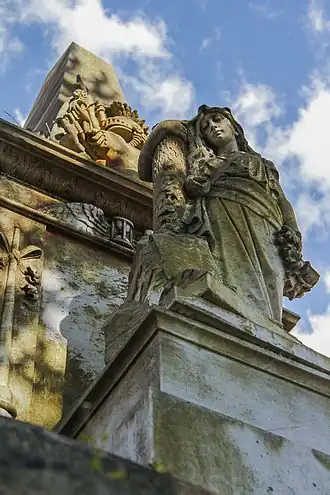 Se trata de un mausoleo que es de tipo neoclásico, y sobre este, se eleva un obelisco hecho de mármol, con una ornamentación militar. Posee escudos de armas y unas guirnaldas hechas de flores.