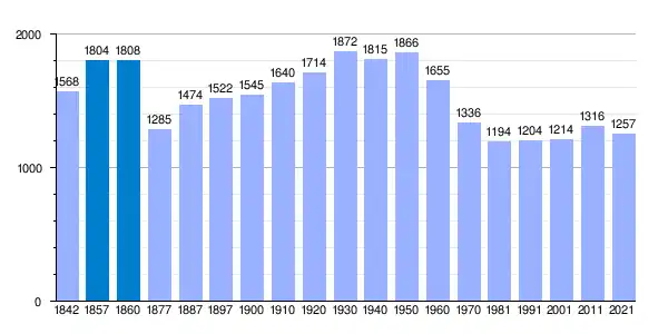 | Gráfica de evolución demográfica de Mazarambroz[7] entre 1842 y 2021 |