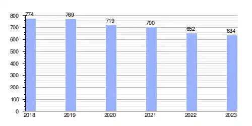 Hasta 2023 la población era de 634 habitantes,[3] con una densidad de población de 61,55 habitantes por kilómetro cuadrado.[2][3]