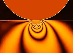 Esto es equivalente al contacto entre una esfera de radio y un plano (ver arriba).