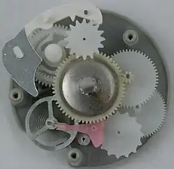 El término mecanismo de relojería hace referencia a un sistema de elementos como engranajes, volantes, ejes o levas (sistema que también se denomina movimiento en relojería), destinado a accionar un dispositivo que obtiene la energía necesaria para mantenerse en movimiento de un resorte o de un peso suspendido.[1][2][3]
