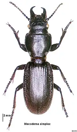 - ↑ a b «Mecodema simplex». Catalogue of Life (en inglés). Consultado el 23 de enero de 2022.