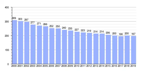 | Gráfica de evolución demográfica de Medín entre 2000 y 2019 |