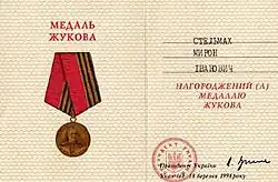 - ↑ a b «Statute of the Medal of Zhukov» (en ruso). Commission under the President of the Russian Federation on state awards. 7 de septiembre de 2010.