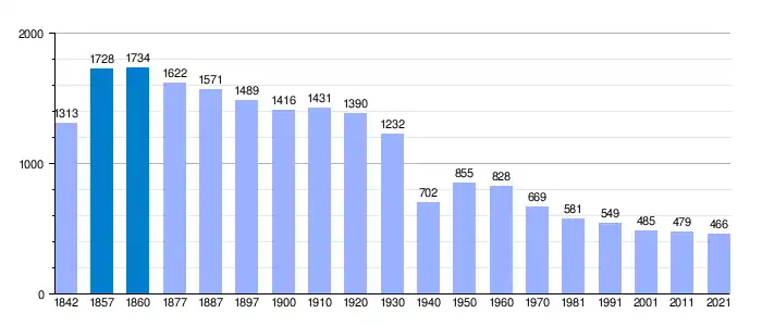 El número de habitantes fluctuó desde los 1313 en 1848 (según Madoz), 844 en 1950, hasta los 549 del censo de 1991. En el INE de 2009 aparecen registradas 492 personas. Con sus 300 viviendas, 10 calles y 15 locales, es un pueblo de media ocupación.