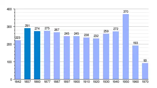 | Gráfica de evolución demográfica de Mediano[3] entre 1842 y 1970 |