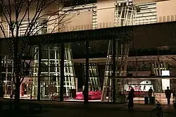 La fachada de vidrio y metal difiere de los volúmenes principalmente blancos y opacos de los edificios vecinos, se combina armoniosamente con el medio ambiente durante el día debido a la reflexión con el exterior, mientras que por la noche la iluminación interior transforma el volumen en una caja de luz de varios tonos.