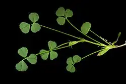 Es una hierba anual, de procumbente a ascendente, ramificada en la base. Los tallos alcanzan un tamaño de 15-30 cm de altura. Hojas con folíolos de 2-9 x 3-7 mm, de orbiculares a obovados u obovado-oblongos. Las inflorescencias en racimos con 1-2 flores; en pedúnculo más corto que el pecíolo de la hoja contigua. Fruto ± discoideo. Semillas de 2,5 mm, ± anaranjadas. Tiene un número de cromosomas de 2n = 16; n = 8.[1]