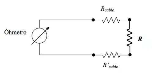 El método más común para la medición de resistencias es el método a dos puntas, utilizando un multímetro u óhmetro para medir la resistencia deseada. Sin embargo, la resistencia medida por el instrumento es la suma de las resistencias de cableado y la resistencia incógnita. Cuando se trata de resistencias grandes comparado a la resistencia de cableado, esta desviación es pequeña, por lo que el valor medido será cercano al valor de la resistencia. Por otra parte, para resistencias comparables a las resistencias de los cables y los contactos, el valor medido será lejano al valor de la resistencia, por lo que este método pierde exactitud.
