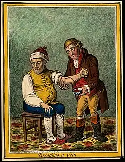 - ↑ «English Caricature: Heroic Medicine--Bloodletting, Emetics, and Laxatives». “Very Ill!” The Many Faces of Medical Caricature in Nineteenth-Century England & France (en inglés estadounidense). Consultado el 4 de enero de 2022.