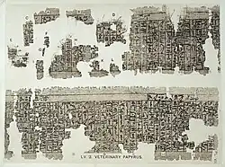 Los papiros egipcios de Lahun (1900 a. C.) y la literatura vedas de la antigua India ofrecen uno de los primeros registros escritos sobre la medicina veterinaria. El emperador budista de la India, Aśoka, ordenó lo siguiente: «En todas partes del reino se harán dos tipos de medicamentos (चिकित्सा), medicina para las personas y la medicina para animales. Cuando no hubiese hierbas curativas para las personas y animales, se ordena comprarlas y sembrarlas».[12]