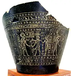 También hay pruebas sobre el uso de clepsidras en el antiguo Egipto.[1] Uno de los primeros, que data de aproximadamente 1500 a. C., se encontró en la tumba del faraón Amenhotep I.[1] Su creación se atribuye a un artesano llamado Amenemhat.[5]