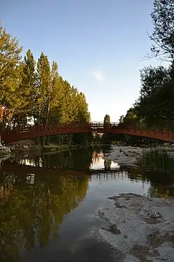 Además, una pasarela de madera que atraviesa el río nos comunica con el parque de Villamar. Precisamente desde este barrio medinés se empezó a suministrar luz eléctrica de forma industrial a los primeros abonados, allá por finales del siglo XIX. Desde el puente se pueden disfrutar de las vistas del Pozo de la Peña, la zona de baño que se utiliza en los meses de verano. El Pozo de la Peña fue durante décadas la gran "piscina" donde aprendieron a nadar los medineses. Hoy su caudal bastante reducido, sigue siendo una zona de esparcimiento muy popular en la ciudad.