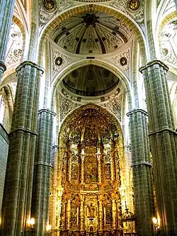 En el interior del templo, destacan la capilla de los Benavente, derroche de exuberancia escultórica. Toda la labor de yesería corresponde a los hermanos Corral de Villalpando y posee un complejo diseño iconográfico. El retablo de la capilla es obra de Juan de Juni y el diseño la reja, de Francisco de Villalpando. En el resto de la iglesia, destacan la reja, obra de Cristóbal de Andino y la sillería barroca, ambas procedentes del convento de San Francisco. Sobre el cancel de entrada se encuentra una piel de caimán, donada en el siglo XVIII, desde México, por Manuel Milán, riosecano que llegó a ser alcalde de la ciudad de Puebla. Frente a la entrada principal se encuentra un órgano del siglo XVII y unas puertas renacentistas, antiguamente colocadas en el lado exterior de la entrada norte. El retablo mayor del templo es una excepcional pieza renacentista, obra conjunta de Gaspar Becerra, Juan de Juni y Esteban Jordán.