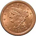 - Cabello trenzado (diseñado por Christian Gobrecht ) - emitido de 1840 a 1857