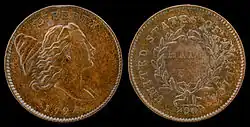 Autorizada por primera vez por la Ley de acuñación de 1792 el 2 de abril de 1792,[1] la moneda se produjo en los Estados Unidos de 1793 a 1857. Estaba hecha de cobre al 100% y estaba valorada en cinco milésimas, o un ducentésimo de dólar. Era un poco más pequeño que un cuarto de dólar moderno con diámetros 22 mm en 1793, 23,5 mm de 1794 a 1836 y 23 mm de 1840 a 1857.[2] La acuñación se suspendió por la Ley de acuñación del 21 de febrero de 1857. Todos fueron producidos en la Casa de Moneda de Filadelfia.