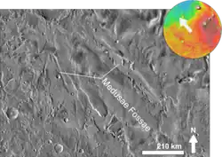 ![]() Imagen por satélite de Medusae Fossae. | ||