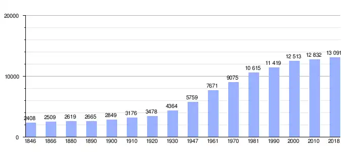 Todos los datos históricos relativos al actual municipio, el siguiente gráfico refleja su evolución demográfica, incluyendo municipios después de efectuada la fusión el 1 de enero de 1977.