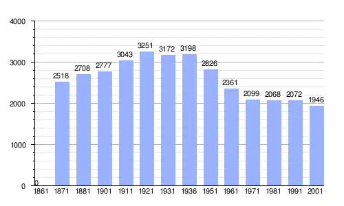 | Gráfica de evolución demográfica de Megliadino San Vitale entre 1861 y 2001 |