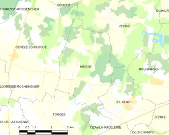 Meigné era una comuna francesa situada en el departamento de Maine y Loira, de la región de Países del Loira, que el 30 de diciembre de 2016 pasó a ser una comuna delegada de la comuna nueva de Doué-en-Anjou[3] al fusionarse con las comunas de Brigné, Concourson-sur-Layon, Doué-la-Fontaine, Forges, Les Verchers-sur-Layon, Montfort y Saint-Georges-sur-Layon.