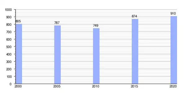 | Gráfica de evolución demográfica de Meira (parroquia) entre 2000 y 2020 |