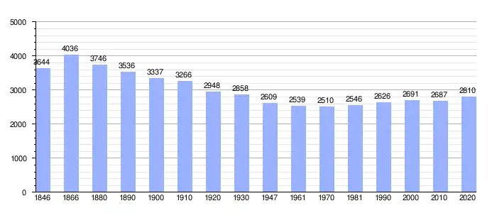 El 1 de enero de 2019, la población total de esta comuna era de 2.809 habitantes. La superficie total es de 54,2 km², lo que resulta en una densidad de población de 52 habitantes por km².