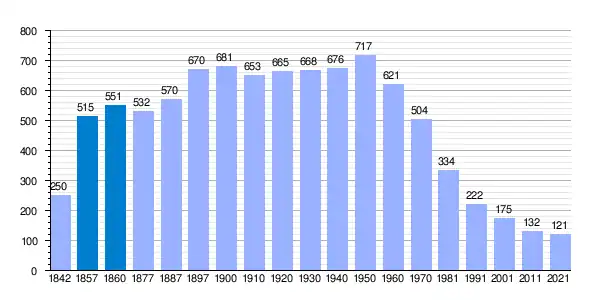 | Gráfica de evolución demográfica de Melgar de Abajo[5] entre 1842 y 2021 |