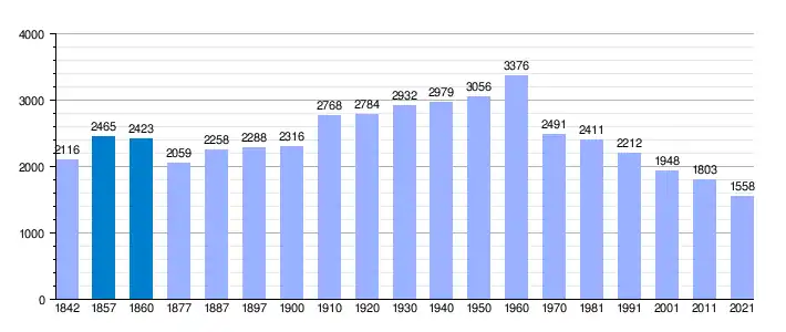 | Gráfica de evolución demográfica de Melgar de Fernamental[5] entre 1842 y 2021 |