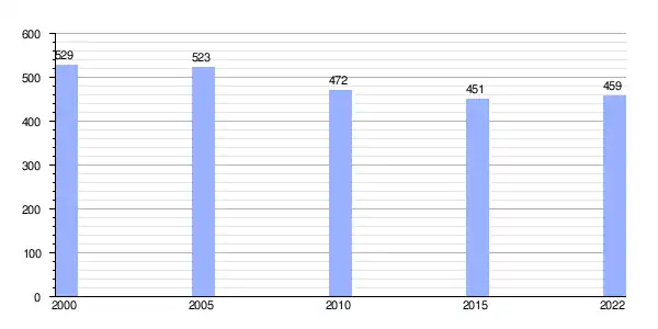 | Gráfica de evolución demográfica de Melias entre 2000 y 2022 |
