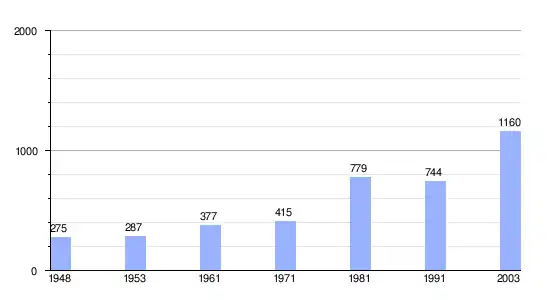 | Gráfica de evolución demográfica de Meljine entre 1948 y 2003 |