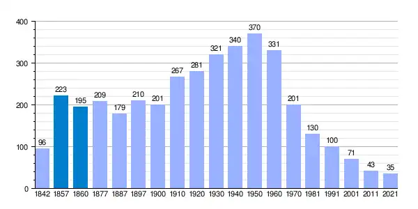 | Gráfica de evolución demográfica de Membibre de la Hoz[25] entre 1842 y 2021 |