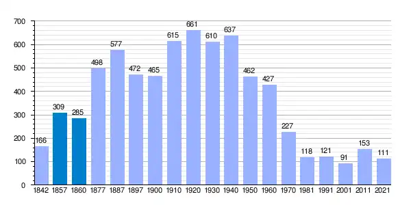 | Gráfica de evolución demográfica de Membribe dela Sierra[9] entre 1842 y 2021 |