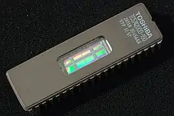 4M EPROM, mostrando la ventana transparente usada para borrar los datos contenidos en el chip - EEPROM (Electrically erasable programmable read-only memory) .