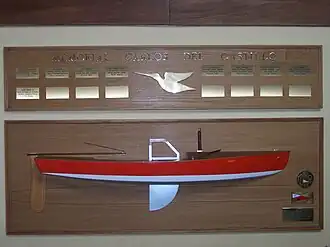 Metopa del snipe "Antela", en la sede del RCAR, con los nombres de los ganadores del Memorial grabados en unas placas. | ||