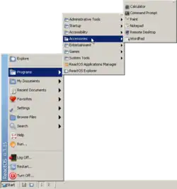 El Menú Inicio tuvo una importante remodelación en Windows XP. Ahora está ampliado a dos columnas, siendo el de la derecha una lista de destinos comunes (Mis documentos, impresoras, panel de control, Sitios de red, etc.), y el de la izquierda los programas anclados o más utilizados. También hay un acceso llamado Todos los programas, el cual muestra los programas instalados en el sistema.