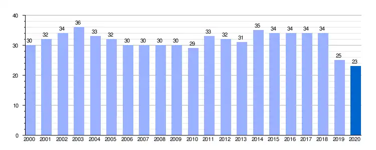| Gráfica de evolución demográfica de Menaza entre 2000 y 2020 |