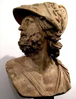 - Nicóstrato — con Helena,[29][30][31] o bien con una esclava.[32]