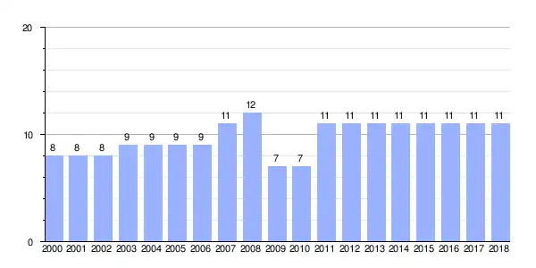 | Gráfica de evolución demográfica de Menlle entre 2000 y 2018 |