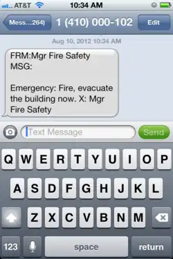 Un mensaje de texto como aparece en la pantalla de exhibición de un iPhone antes de iOS 4.