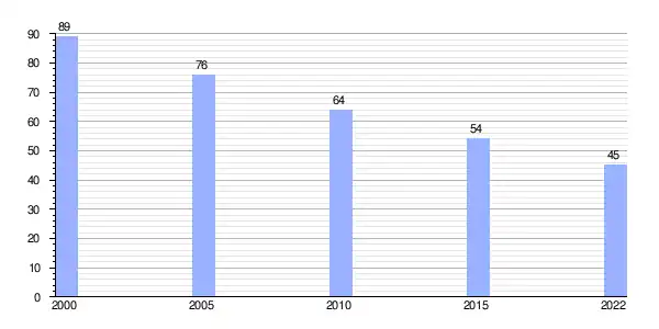| Gráfica de evolución demográfica de Meréns entre 2000 y 2022 |
