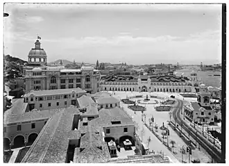![]() Al fondo hacia la derecha se aprecia el edificio del mercado en 1922. La torre que se ve en el extremo derecho es la que se mantuvo en pie y donde actualmente funciona el restaurante Ancoramar. | ||