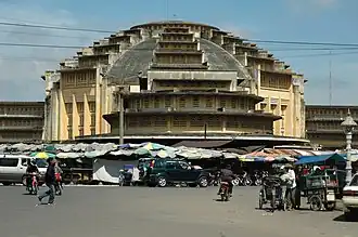 El edificio de estilo art déco es un hito de Nom Pen. Antes de 1935, el área era un lago que recibía aguas durante la temporada de lluvias. El lago fue drenado y la construcción comenzó en 1935. Desde su finalización en 1937, las inundaciones de la temporada de lluvias en todo el mercado ha seguido siendo un problema y es evidencia vestigial del antiguo lago.