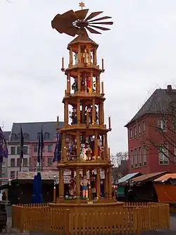 En casi todos los pueblos y ciudades de Alemania, Austria, Polonia y Francia se colocan tradicionalmente mercados navideños durante la época del Adviento y reciben el nombre de Weihnachtsmarkt, aunque en ciertos lugares tradicionalmente son llamados «mercado de Adviento» o «mercados del niño Dios» (traducción literal de Christkindlmarkt). Antiguamente servían estos mercados de un lugar cálido al principio del invierno para dar cobijo a los habitantes del lugar, con el tiempo se convirtieron en un elemento fijo de la celebración navideña; para el día de la Navidad ya están cerrados la mayoría de estos mercados.