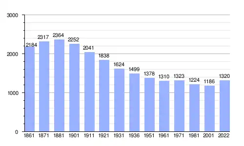 | Gráfica de evolución demográfica de Mercenasco entre 1861 y 2022 |