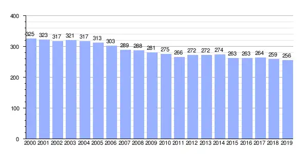| Gráfica de evolución demográfica de Mercurín entre 2000 y 2019 |