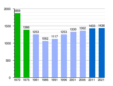 Suma de la población de derecho de los antiguos municipios que posteriormente se unieron en el actual, según INE. Población de derecho (1981-1991) o población residente (2001-2006) según los censos de población del INE.[4] Población según el padrón municipal de 2011-2021 del INE. |